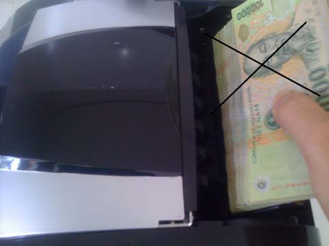 - Khi để tiền vào máy nên đặt một cách nhẹ nhàng và kiểm tra xem tiền đã phẳng có nhăn nheo không hay thẳng hàng chưa.